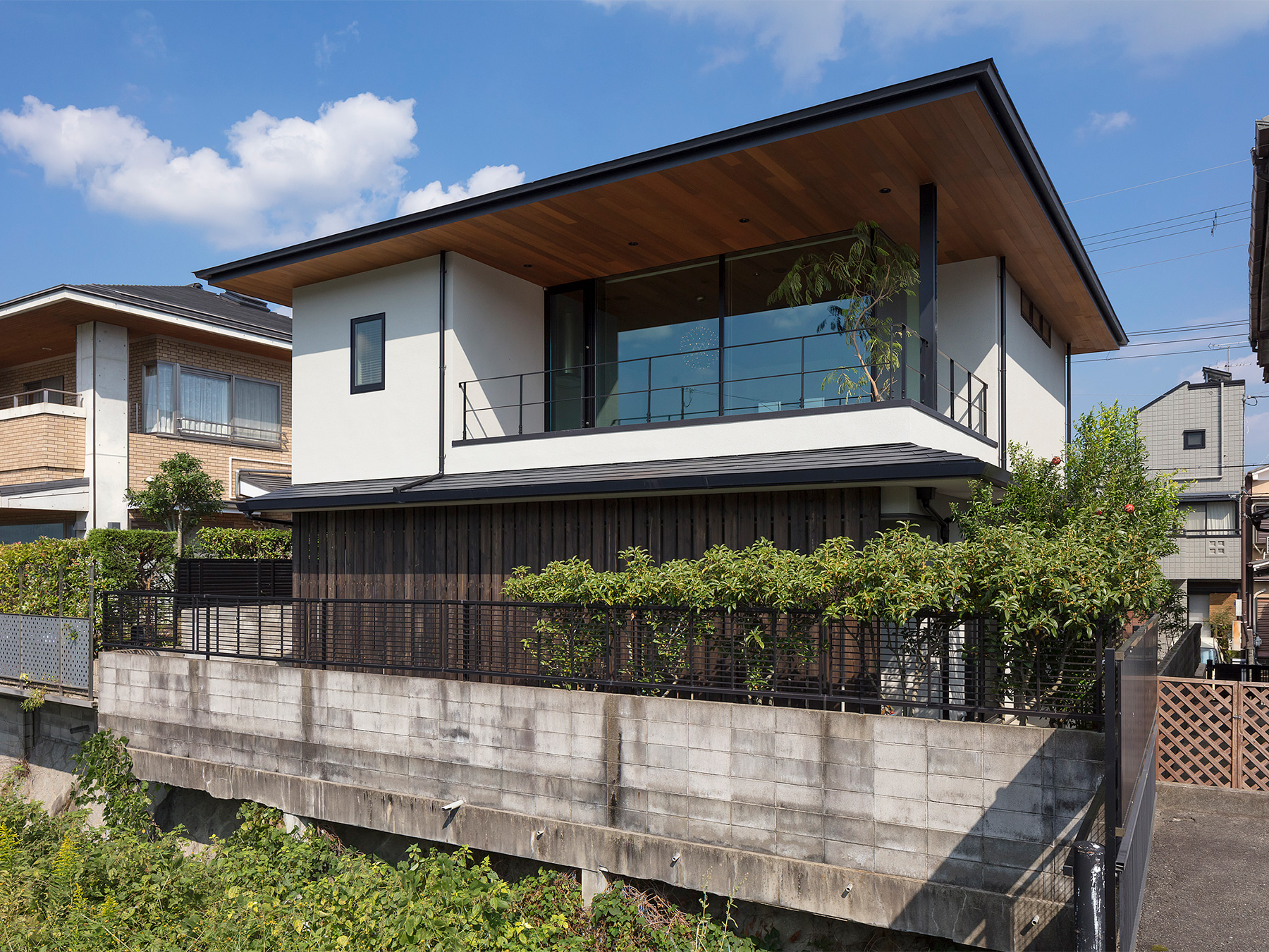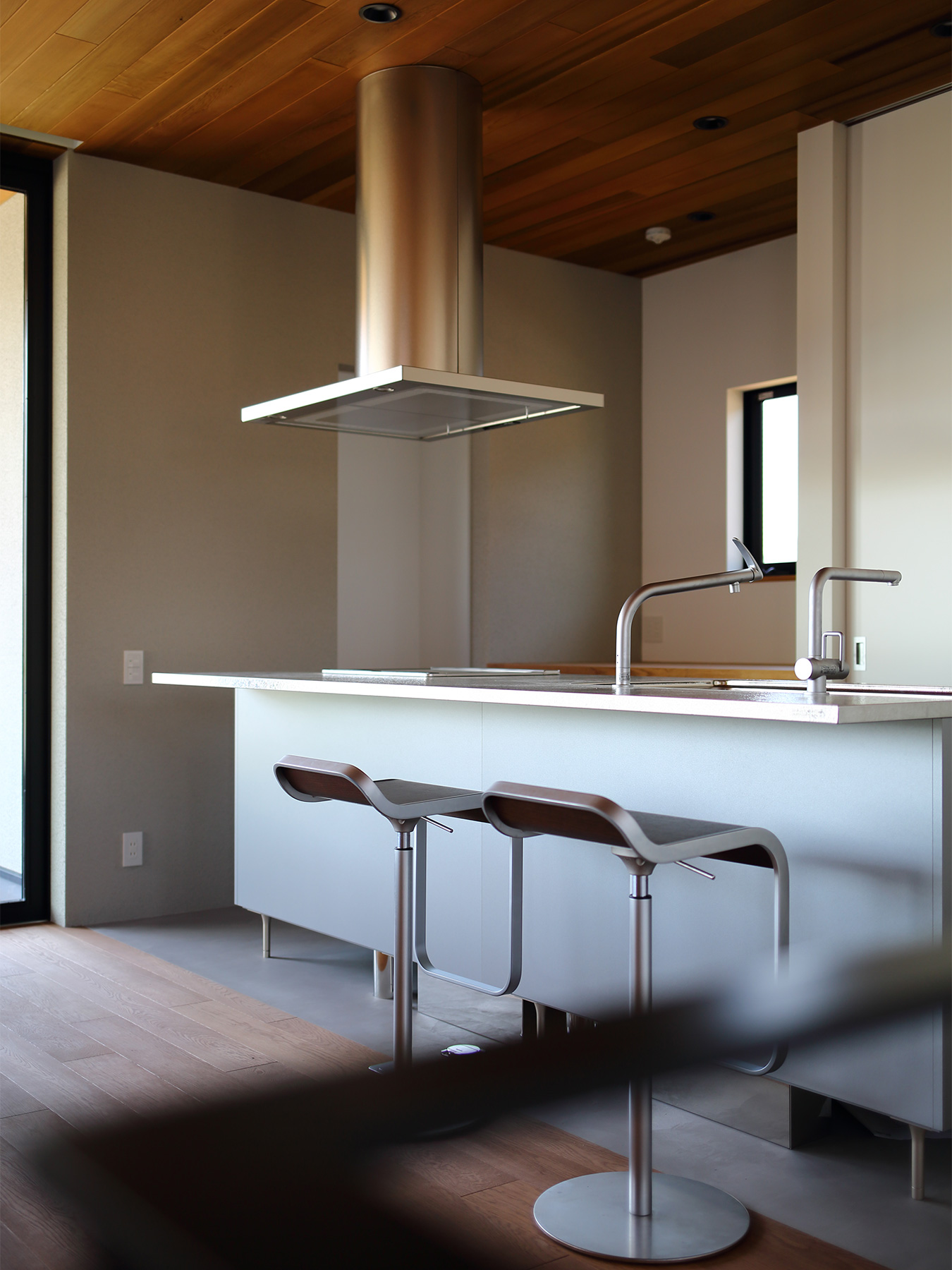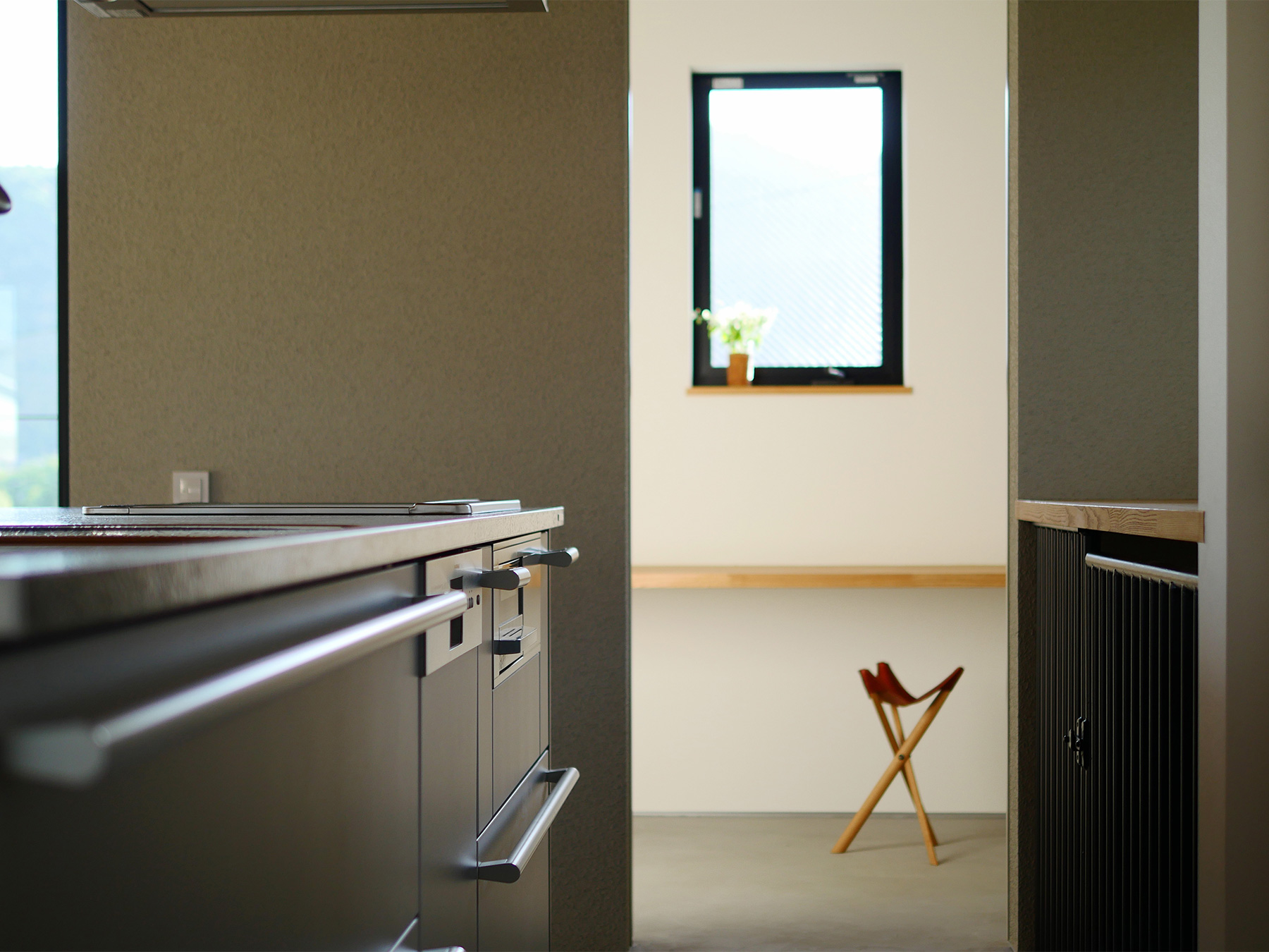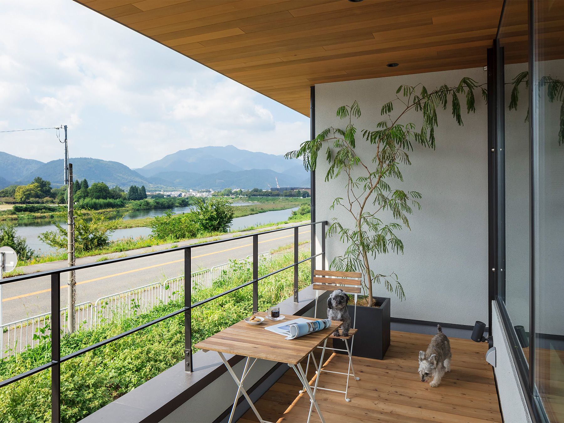 京都嵐山の絶景を存分に楽しめる「嵯峨の家」。立地のよさを最大限に引き出すために、生活の中心を2階にして、間仕切りのない開放的で明るいLDKに仕上げました。壁一面に広がる窓がこちらの住まいの最大の魅力。窓枠の仕様に美術館の設計を参考にするなど、一般的な木造住宅の概念にとらわれないダイナミックかつ繊細な設計で、家の中にハレとケのメリハリがある空間ができました。
