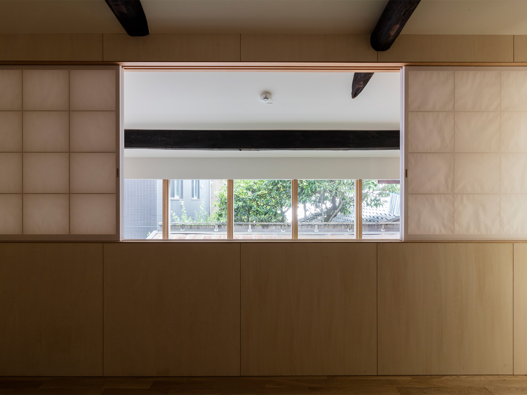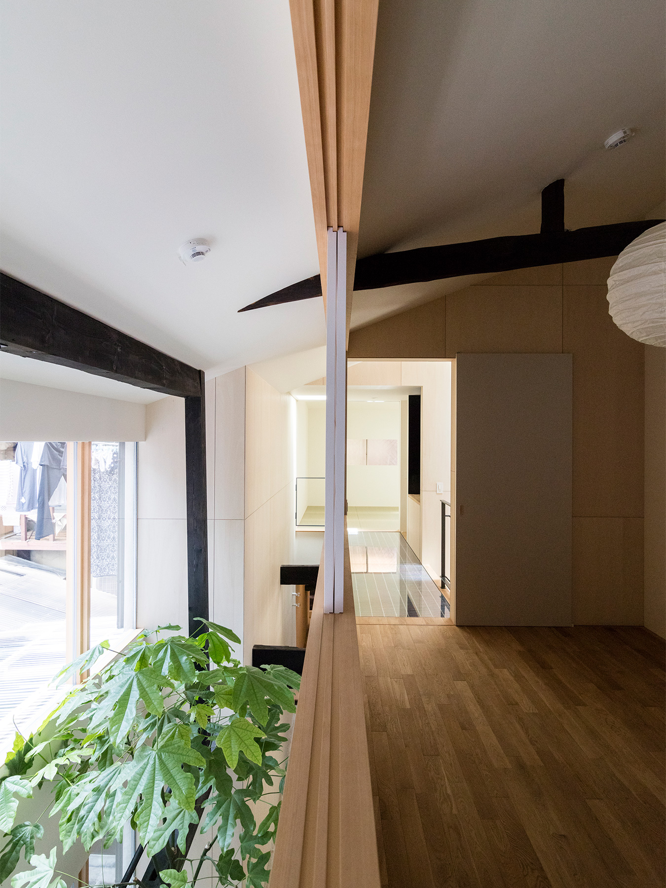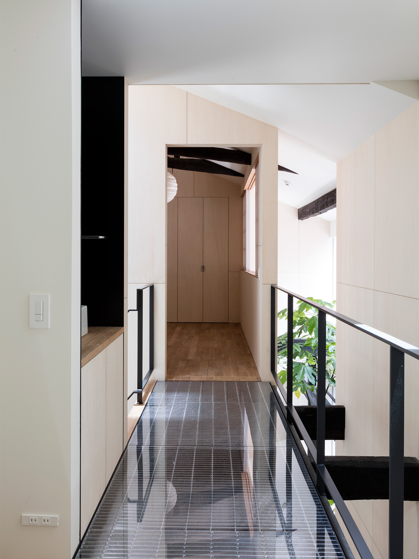 京町家をゲストハウスにした物件のリノベーション。 外観は和風の趣を残しつつ、モダンでシンプルな内装はまさに「リ・町家」のコンセプトを反映した町家の再生となりました。 ゲストハウスらしくお客様が気軽に出入りできる開放的なエントランスは、日本家屋においてかつて外と内を繋いだ土間空間の現代的な解釈です。